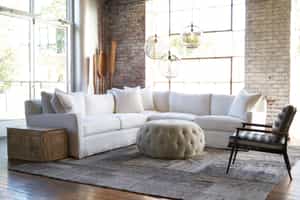 The Cosmo Sectional, like the Cosmo sofa, was constructed with a bench seat and five loose cushions. It features Cisco's supportive No-Sag Seating, with sinuous springs in an arch shape mounted every 3 to 4 inches for the length of the sectionals. Two 8-gauge runners provide further support. To complete the look, a stylish bolster pillow as well as another throw pillow are included.
