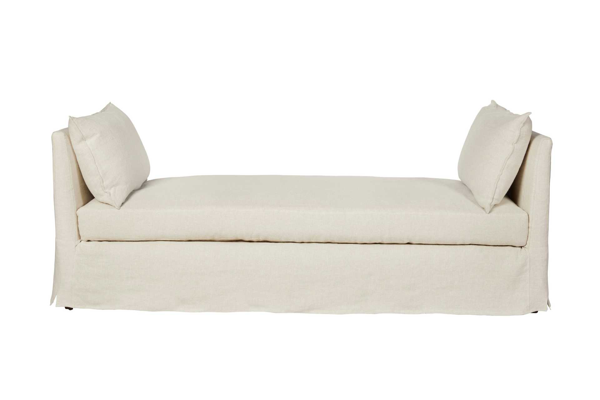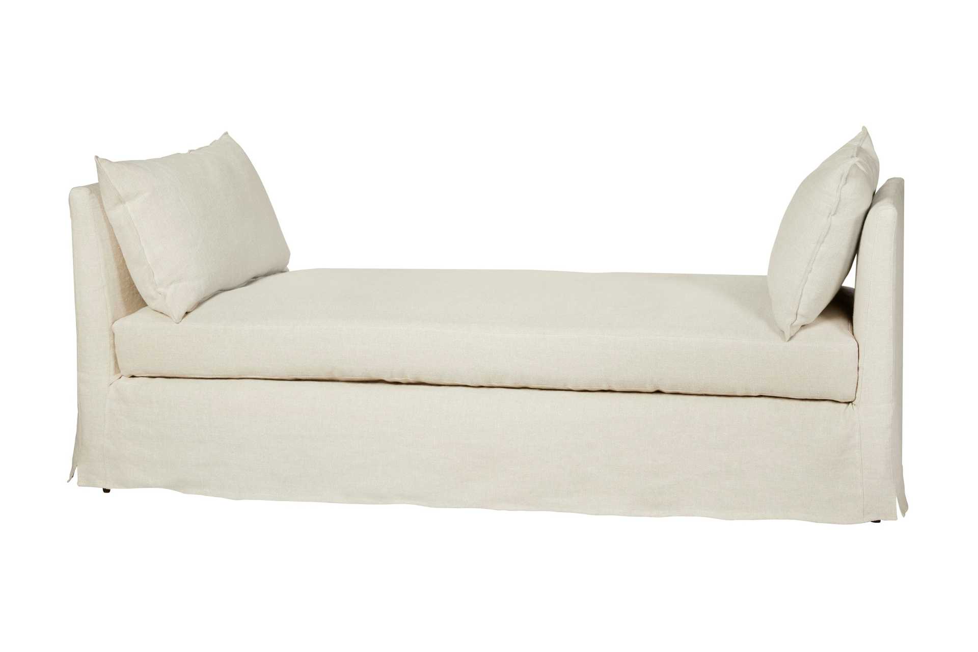 Customizable to suit your preferences, the April Daybed has options for upholstery and slipcover, allowing you to tailor it to your unique style. Its maple wood legs, featuring a charming caramel finish and removable design, add a touch of elegance while providing ease of customization. Whether lounging with a book or accommodating guests overnight, the bench seat cushion and included accent pillows offer plush comfort and relaxation.
