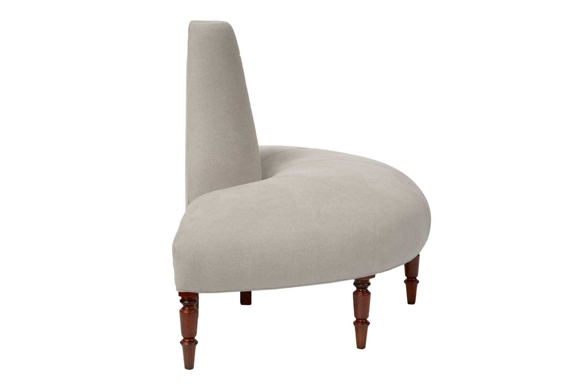 This sofa features 9-inch high decorative legs in a Fritillaria style with a refined maple and fruitwood finish, adding a touch of sophistication to its design. Upholstered with 6 yards of high-quality fabric, the Coin Half Sofa is customizable to match your decor. The eco-friendly Inside Green option ensures that this sofa not only looks good but is also good for the environment.