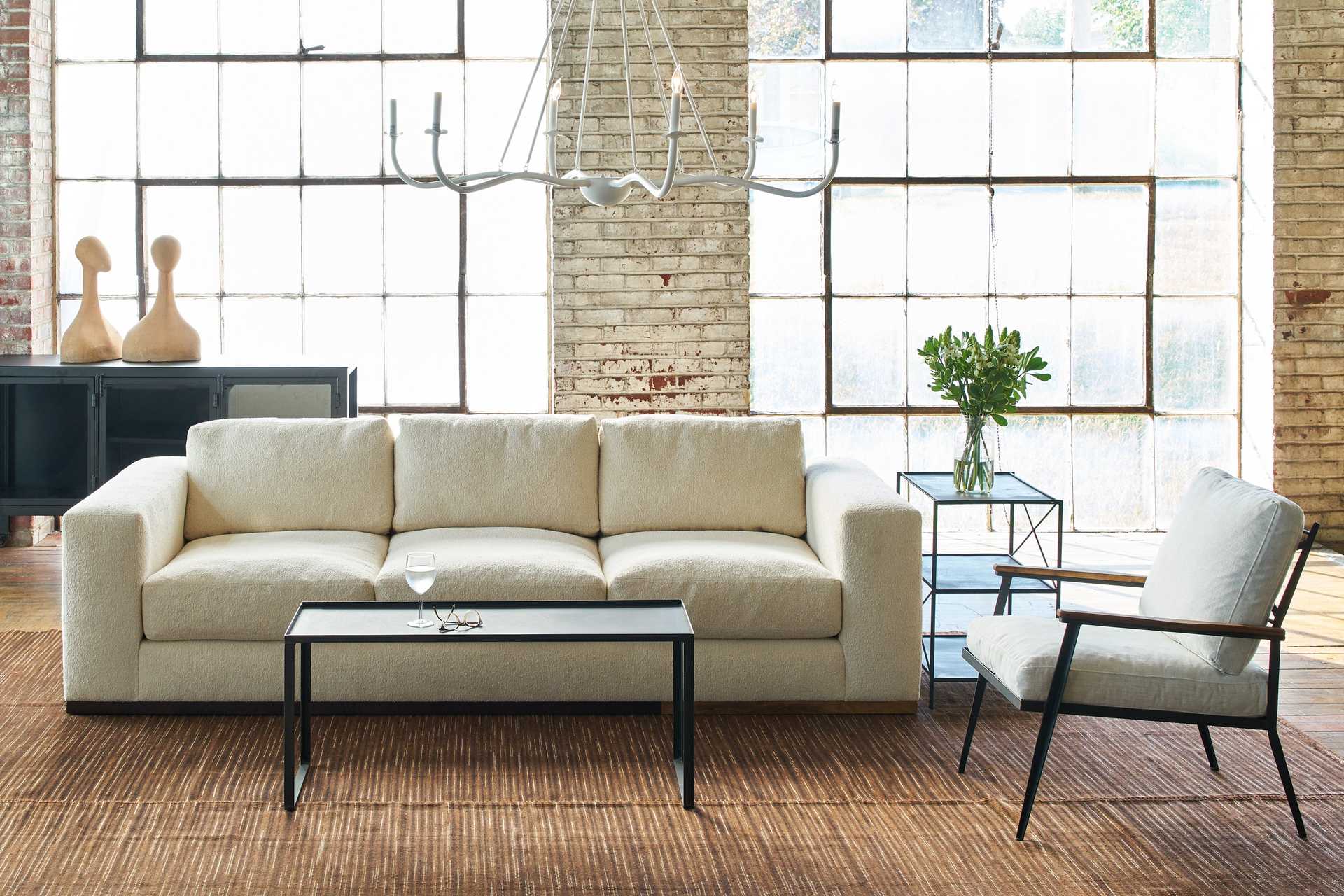 Crafted with care in the USA, the Safia Sofa features a sturdy frame made from FSC® Certified Wood and supported by durable webbing. The base, finished with reclaimed oak and sealed with a natural wine dye and clear sealer, adds a unique and rustic touch to its aesthetic. Upholstered with 18 yards of high-quality fabric, this sofa not only promises durability but also exudes elegance and sophistication.