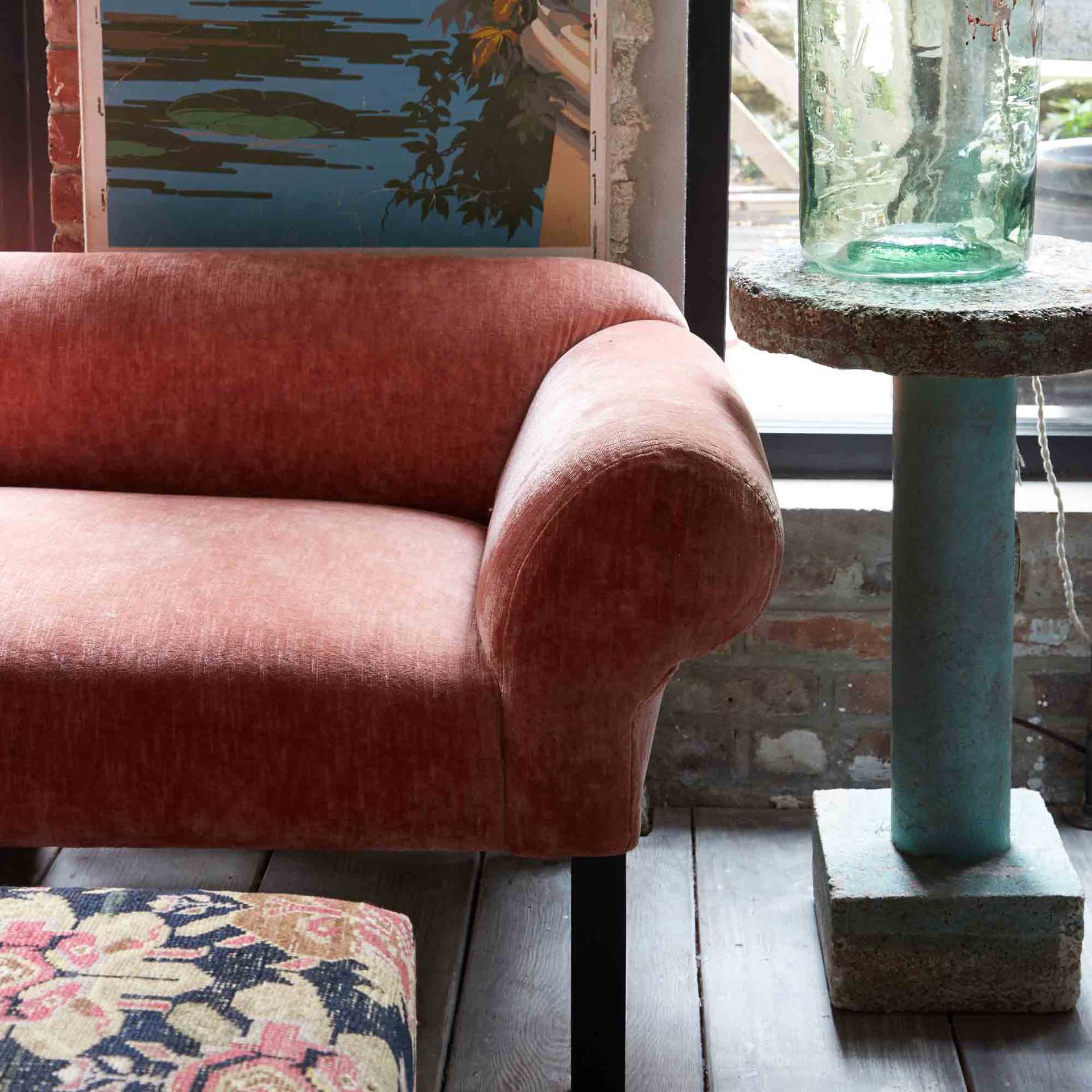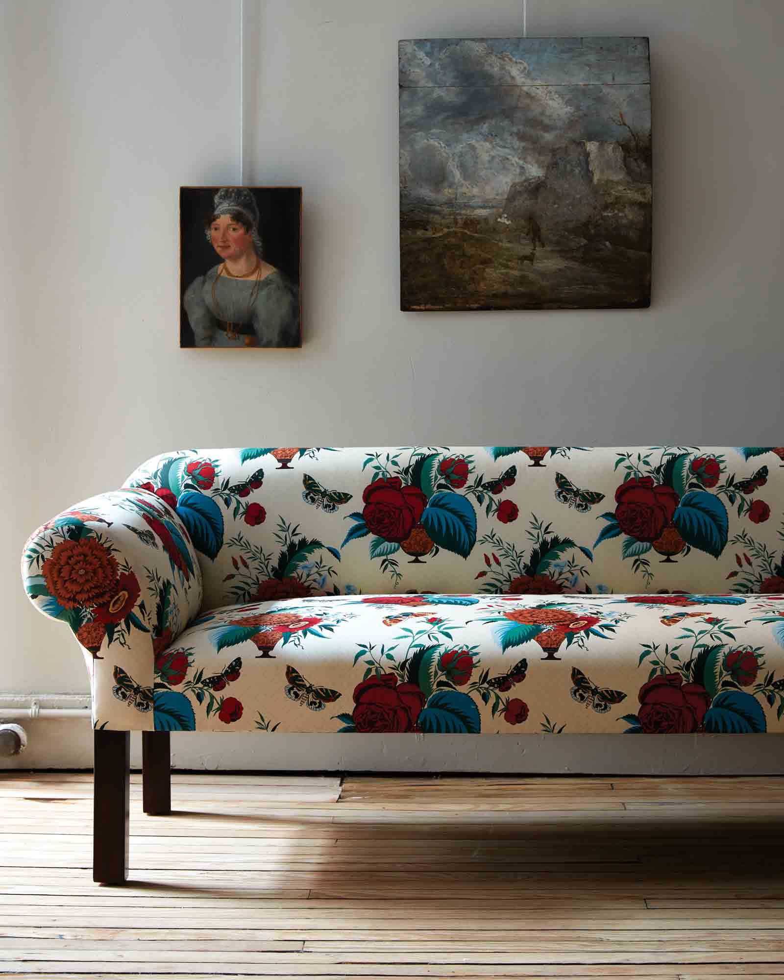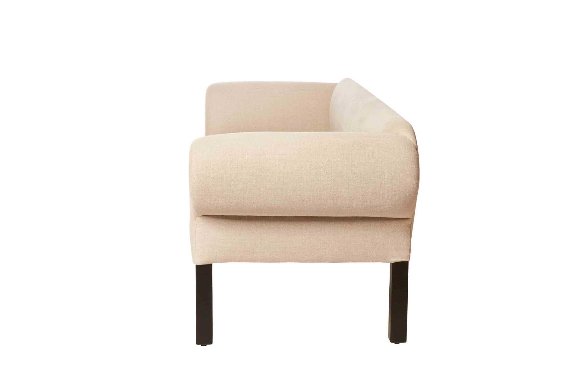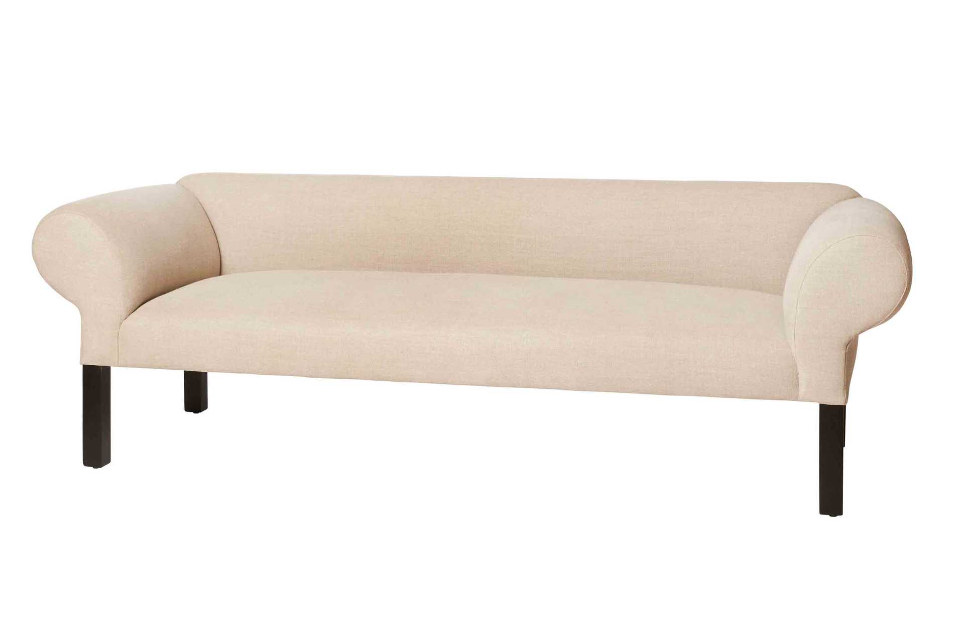 The Cisco Home Teddy Sofa by John Derian features plush, gently curved arms and a solidly comfortable seat, blending coziness with sophistication. Measuring 78 inches wide and 27 inches high, it boasts meadow-style legs with an ebony maple finish and a tight seat and back cushion for a clean look. Made in the USA with FSC® Certified Hard Wood and customizable options, this sofa offers both style and sustainability.